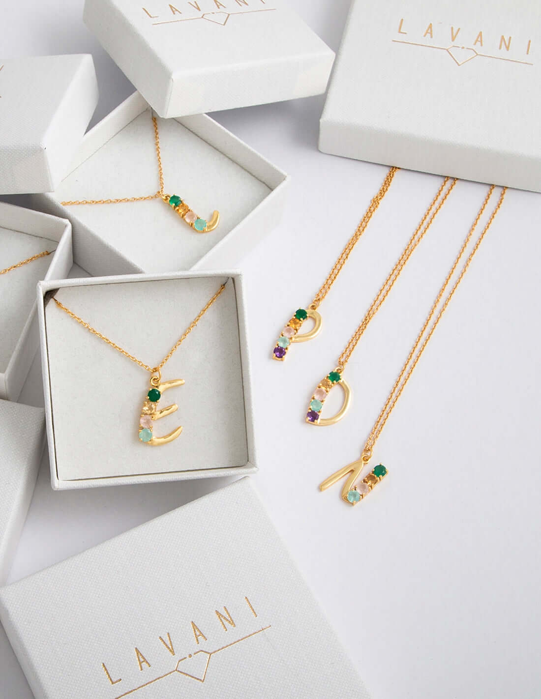 We presenteren onze nieuwe collectie:brieven. hangers met jeinitiaal in goud...ikin de puurste Lavani-stijl! We moesten onze karakteristieke toets, de stenen, meenemen. En hoe kun je dat beter doen dan met de stenen van je favoriete producten, de Pride-hanger of de Halley-oorbellen. Verder is elk van deeerste hangers is dat zomet de hand geschreven door de leden van het Lavani-team. Zo kun je hem altijd bij je dragenje initiaal, of degene die het meest voor u betekent, met de speciale touch van Lavani.